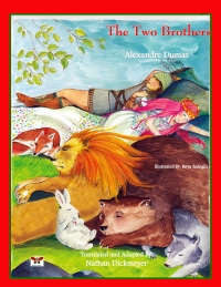 The Two Brothers is based on an Alexander Dumas (père) fairy tale written during one of the two periods in which he wrote stories for children. In The Two Brothers Dumas creates several magical scenes where five different animals talk and do the bidding of the brothers. In these episodes each animal repeats a phrase or action in a way that is delightfully childlike. The tale develops the moral strengths of brotherhood, perseverance, patience, truth, courage, and faithfulness. The loyalty and fellowship of the five animals, all natural enemies, echoes and reinforces the story’s moral themes. Each brother and his animals becomes a family, where the clash of characters is both colorful and a source of strength.