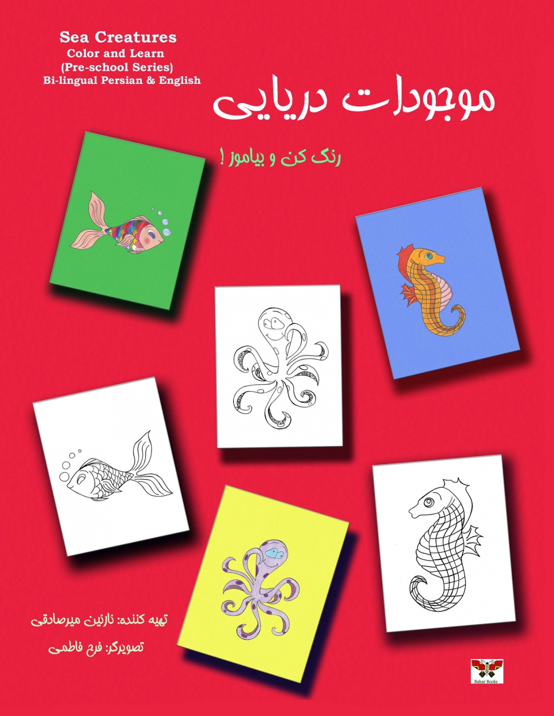 کتابی دوزبانه شامل اسم های موجودات دریایی به زبان فارسی و  انگلیسی. این کتاب  دربرگیرنده تصاویر بسیار زیبای رنگی از موجوات دریایی ست و در ضمن با ارائۀ طراحی های سیاه و سفید به کودکان این امکان را می دهد تا ضمن رنگ کردن تصویرها، اسامی موجودات دریایی را بهتر بیاموزند!